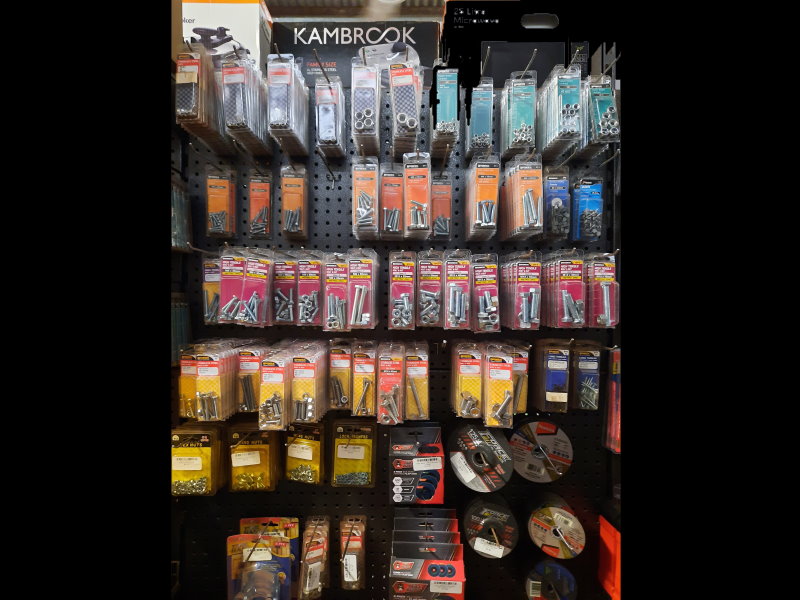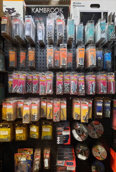 - Hardware supplies - nuts, bolts, screws, power tools, hand tools, tapes, chain, generators, pressure washers etc.